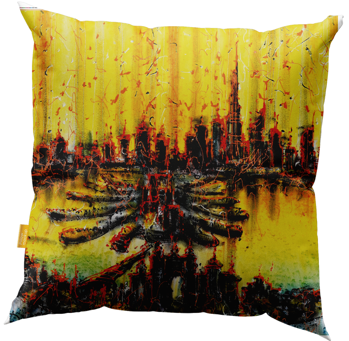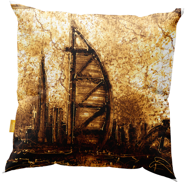 This artistic pillow from the Dubai Collection by Vidma Wait brings the city’s architectural icons into your interior with bold expression and detail. Whether it’s the majestic Burj Khalifa or the iconic Burj Al Arab, each design captures the pulse of Dubai in rich, textured brushwork and striking color palettes.