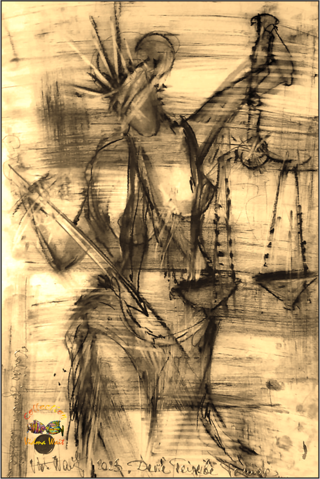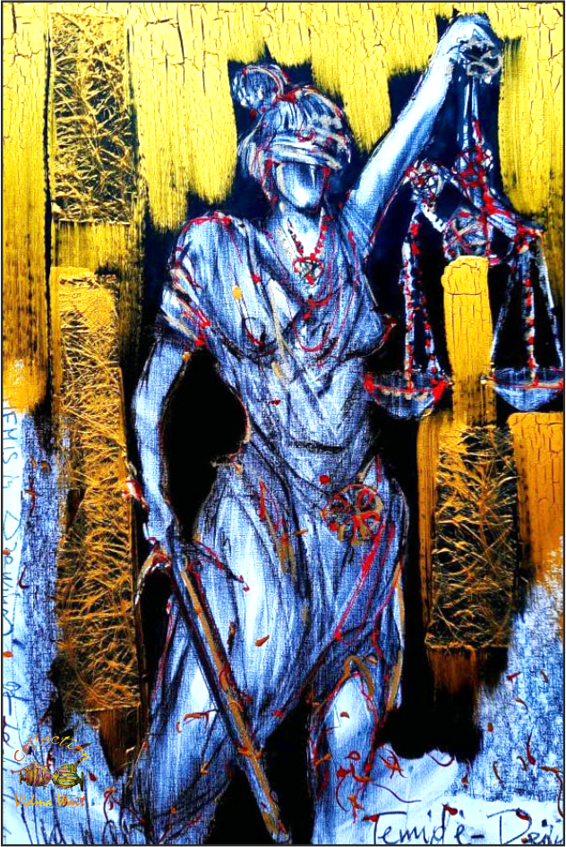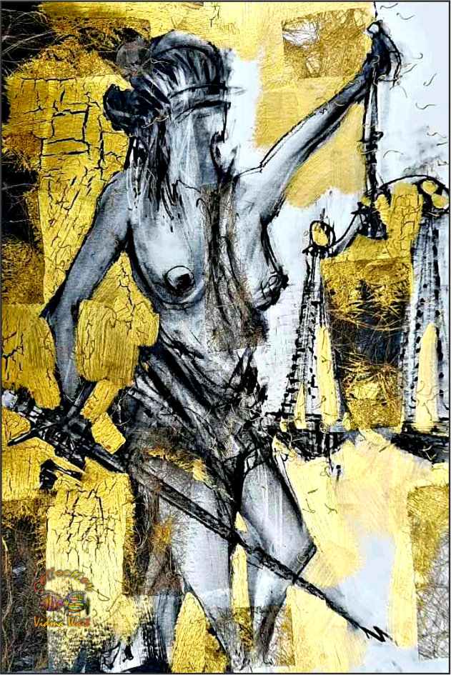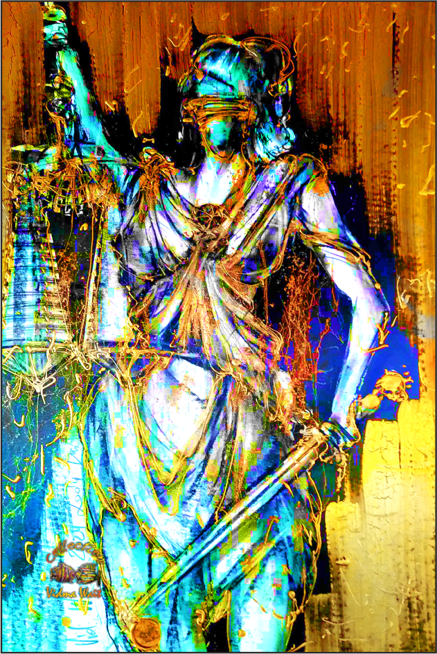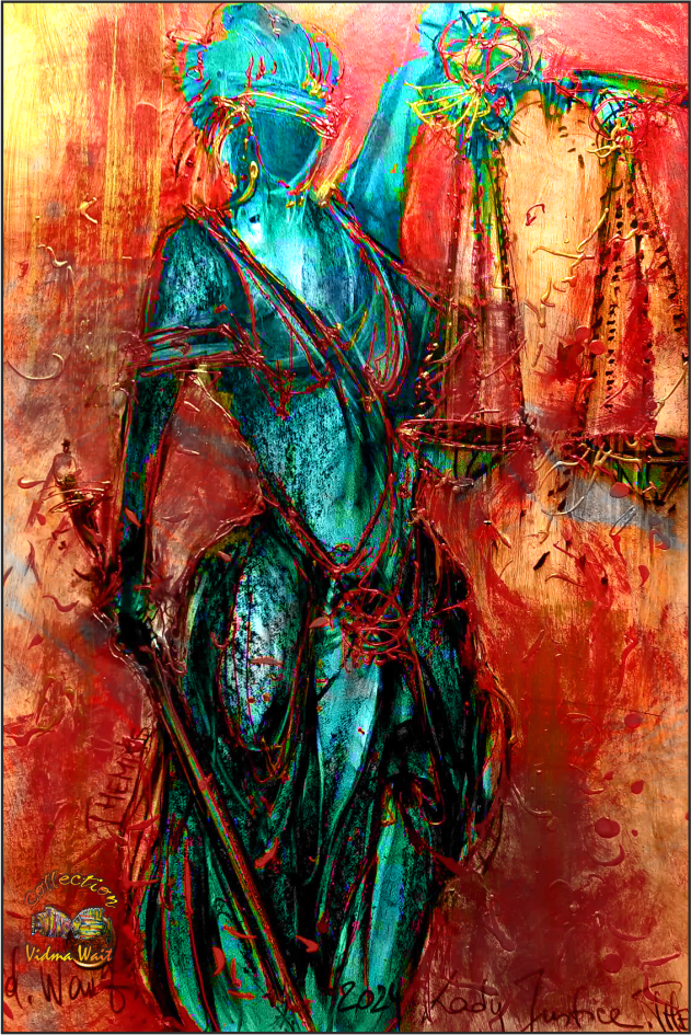 The Art Print – Justice Collection delivers an intense visual statement to any interior. Each piece features Lady Justice through the eyes of Vidma Wait—raw, unfiltered, and layered with symbolic meaning.