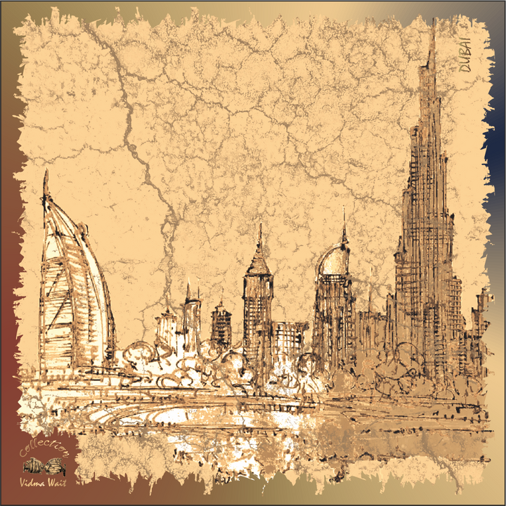 Wrap yourself in the bold architectural energy of Dubai with this exclusive scarf from the Dubai Collection by Vidma Wait. Each design transforms the city’s iconic skyline into wearable art — from the towering Burj Khalifa to the graceful curves of the Burj Al Arab. Whether you’re strolling through the city or elevating a casual look, this scarf makes a statement of elegance, confidence, and global flair.
