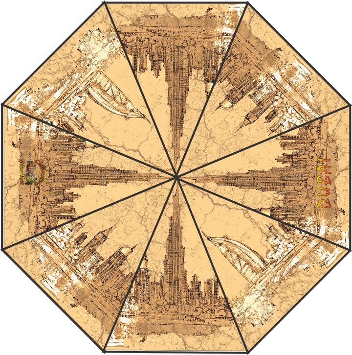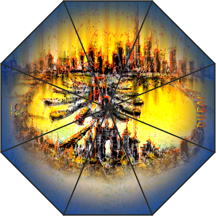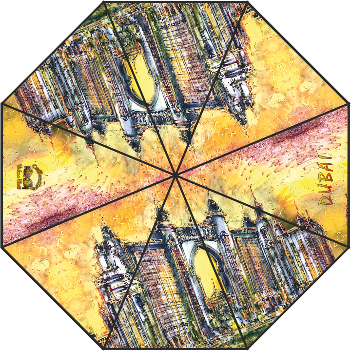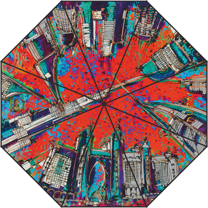Step into the vibrant pulse of Dubai’s skyline—where iconic architecture meets artistic brilliance. This stunning umbrella collection by Vidma Wait transforms everyday functionality into a showcase of modern art. Each umbrella features hand-drawn, digitally enhanced depictions of Dubai’s legendary landmarks like Burj Khalifa, the Palm, Burj Al Arab, and the Atlantis—infused with explosive color palettes and fine textures that radiate with energy.