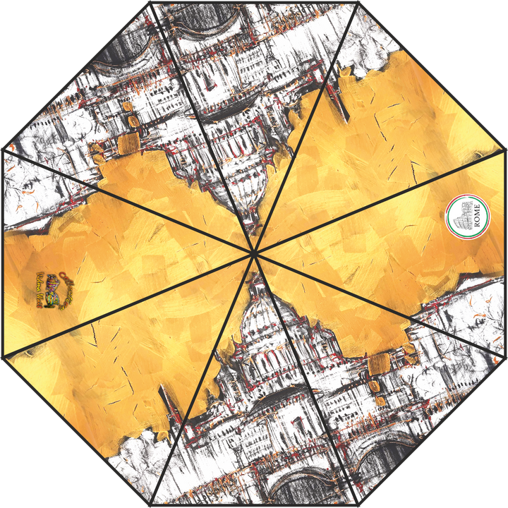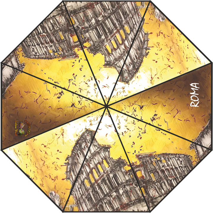 Shield yourself from the rain in style with our Rome Art Collection Umbrella, a unique fusion of function and fine art. Each umbrella features authentic, high-definition prints based on original hand-painted works by artist Vidma Wait, celebrating the eternal city’s architecture, atmosphere, and timeless beauty. The vibrant imagery is seamlessly printed across a wide, octagonal canopy to fully showcase each landmark’s expressive detail — from the Colosseum to St. Peter’s Basilica.
