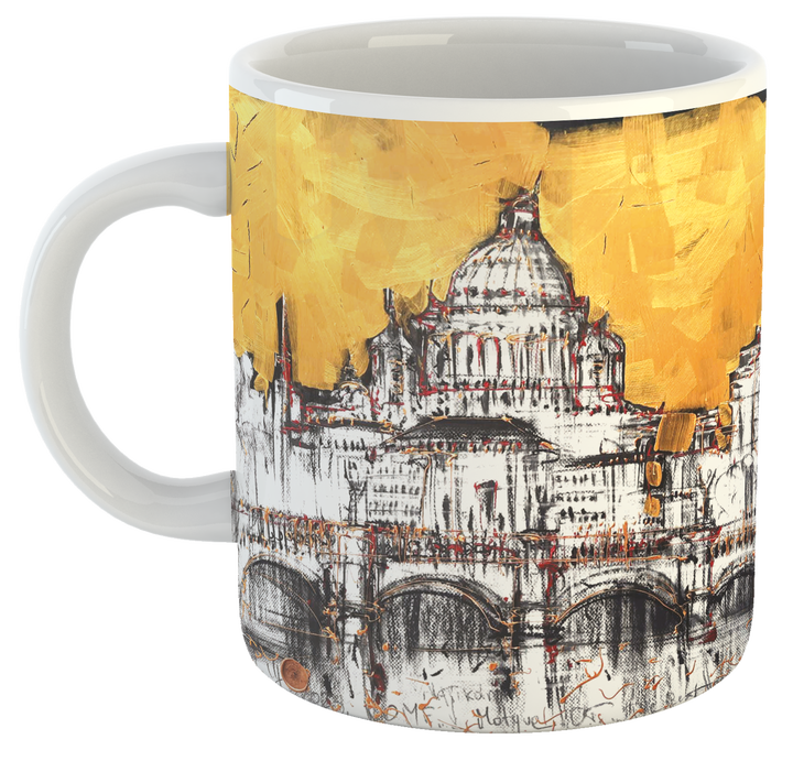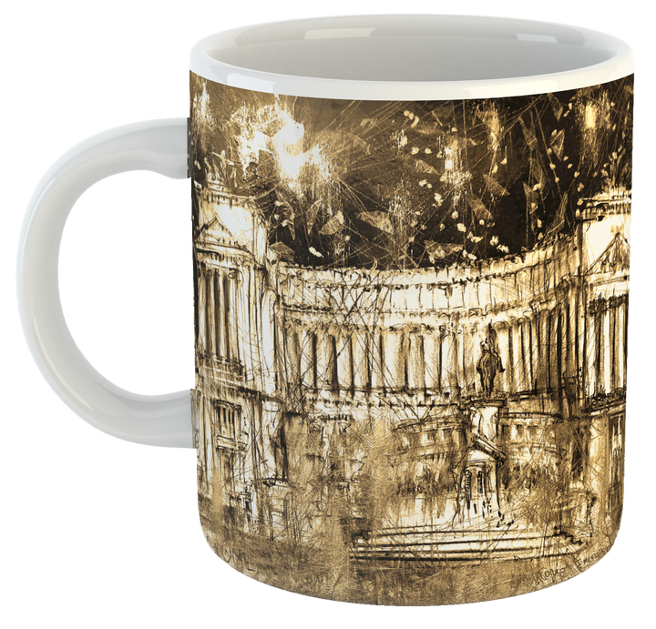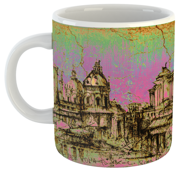 The Rome Collection Mug brings the architectural soul of Italy’s eternal city to your morning routine. Designed by Lithuanian master painter Vidmantas Vaitkevičius, each mug features a museum-grade reproduction of his original art — from sepia sketches of ancient ruins to bold, color-splashed monuments.